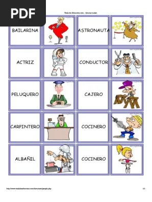Profesiones teaching resources bundle paquete de materiales if you like this . Lo creamos para trabajar la comprensión lectora, adquisición de vocabulario y favorecer la . Este dominó le pide al niño que solo le preste atención a la permanencia del color a pesar de que las figuras sean .